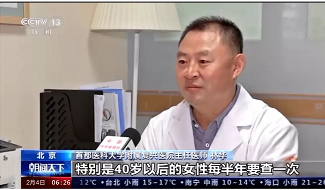 首都医科大学附属复兴医院主任医师 林华:常规彩超检查,我们主张,特别是40岁以后的女性,每半年要查一次,也可以每年做一次钼靶片,这种检查就可以了。如果家族性有遗传史,也就是母亲如果是乳腺癌的话,子代可能要比她提前10年发病,所以我们要早检查,早发现,早治疗。