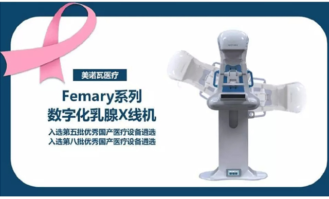 乳腺X线摄影是国际公认的乳腺癌早期筛查的金标准。美诺瓦医疗专为亚洲女性致密型乳腺研制了采用钨钼靶面技术的Femary系列数字化乳腺X线机。通过搭载的高亮度碘化铯探测器,可观察到小于0.2毫米的微小钙化点及钙化簇的超清影像图,精准定位微小病灶,为乳腺疾病早期筛查提供保姆级解决方案。该设备两次入选“优秀国产医疗设备目录遴选”。